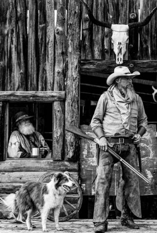 In the timeless realm of the old West, I witnessed a scene that spoke volumes about the spirit of the era. Captured in this photograph, titled “Last Call” an old cowboy steps out of a weathered saloon, his loyal companion faithfully following at his side. Through a nearby window, another cowboy, perhaps a fellow wanderer, watches the departing figure with a sense of contemplation.